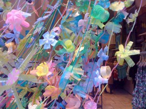 Fused straw hair clip + William Chambers Millinery, plastic straw hat + Make a St. Briget’s Cross from drinking straws.