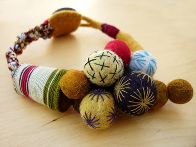 Below, Kjoo bracelet via bijoux textile with other fabric jewellery.