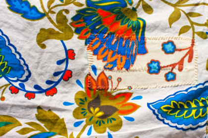 The mended mat shown here was found with a marriage contract for the remarriage of a poor couple.