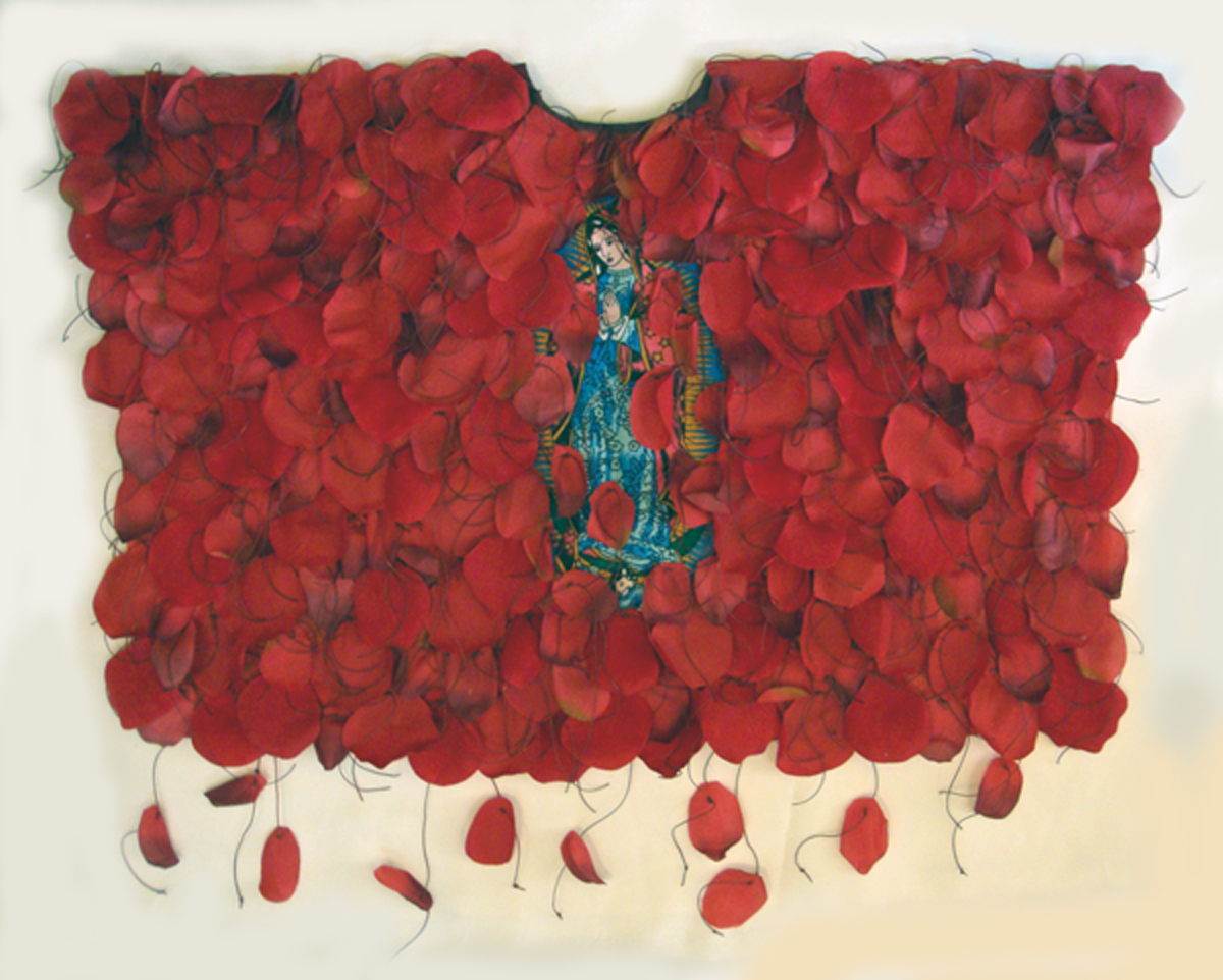 ALL ROSES, ALL THE TIME, huipil by Lena Bartula: «In order to illuminate the stories of women whose voices have been forgotten or silenced, I have been creating contemporary huipils, the name for traditional Mexican blouses, each of which represents a particular woman or group of women».