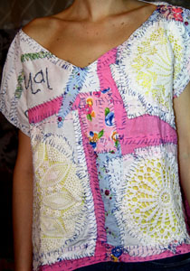 I’ve stitched the world “χαιρομαι,” the Greek word for “delight,” on this huipil.