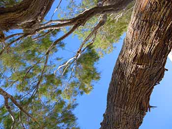 Tamarisks have exceeding long tap roots allowing them to go way down into the ground and exploit natural water resources. And this is probably the reason they are able to live so close to the salty sea. They are also able to absorb the night’s moisture. If you’re underneath a tamarisk during the morning, you will feel how extremely cool its shade is and, looking up, you will see shiny droplets of water on its skinny branches. By noon, the droplets will have evaporated away.