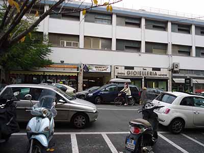 The corner near the market where the itinerant vendors park. Rome has a history of itinerant vendors and outoor markets.