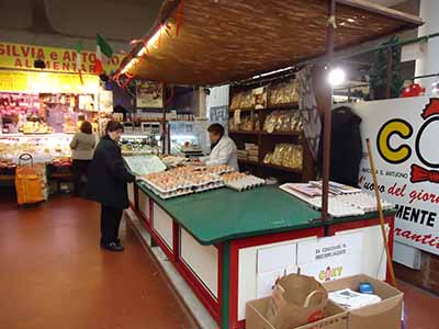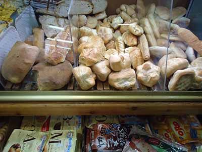 Next to the butcher is the butcher’s wife’s bread stall. There’s always a line –Italians are bread dependent.