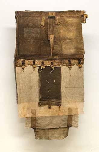 One link leads to another and that’s how I discovered the work of Irini Gonou. Irini’s work is very poetic and deals a lot with magic scripts and apotropaic texts. She has a series of work entitled The Sheltering Word representing her exploration of the healing and protective powers of the written word.