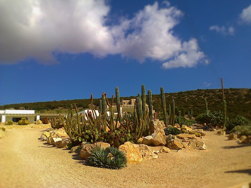 When Franca was here, we rented a car and took a drive around the island. Southwest of the island is an area called Farangas with its somewhat sauvage landscape. There are many villas hidden on the hills but one villa that’s not so hidden is the House of Kakti. It is quite unique because of its incredible cacti garden.