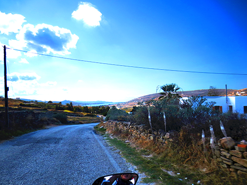 A few days ago we rented a scooter and went to Naoussa to eat fish. Like a senior’s version of Born to be Wild, we were just looking for adventure and whatever came our way. Happy, I wanted to immortalize the moment and, using my tired little Canon, starting clicking away (which wasn’t always easy especially on the curves).