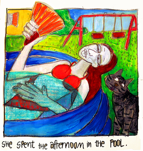 It was hot and my thoughts were drowning in sweat. Listless, I decided to try resuscitating myself in the kiddie pool. Instead, I fell asleep and entered a densely populated dream world. That’s where I met Lolly Willows. Lolly was a middle-aged spinster who, tired of her controlling family, moves to a small village where she lives with her cat, Vinegar. No longer willing to do the duties expected of her as a woman, Lolly decides to become a witch. When she meets the devil, she tells him that women are like sticks of dynamite waiting to explode. The devil, “a kind of black knight, wandering about and succouring decayed gentlewomen,” tells Lolly that, in exchange for her soul, he will give her the sensation of freedom and a life of her own. Lolly has no fears of such an exchange because, she says, “Women have such vivid imaginations, and lead such dull lives. Their pleasure in life is so soon over; they are so dependent upon others, and their dependence so soon becomes a nuisance…”