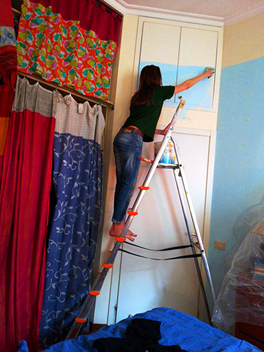 My Fairy Princess came to help me. And when the beige wall turned a blue pastel, I could feel the new energy. Fresh paint had given me fresh thoughts.