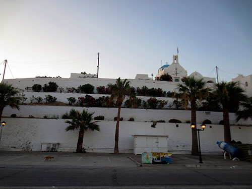 The church of Agios Konstantinos that sits high on the hill reigning over rows of oleanders.