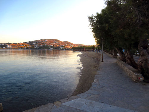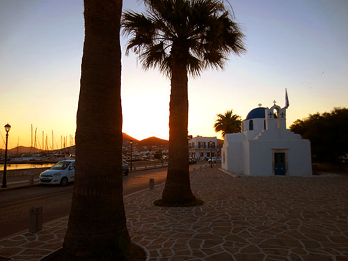 Part of my walk takes me past the little domed church of Saint Nicolas Thalassitis. On the right is a row of tamarisks where local farmers, protected by the shade, bring their produce to sell. In fact, I bought a watermelon on my way back home.