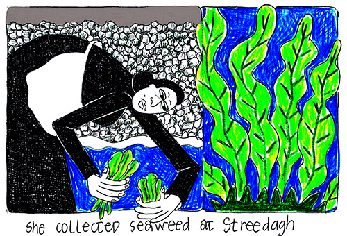 I guess I owe my unusual existence to Oliver Cromwell. Under his command, the Brits invaded Ireland in 1649 radically altering Irish conditions of possibility. Cromwell hated Catholics and executed as many as he could. He also sent many little wee-ones to the sugar plantations in the West Indies. Depopulated, Ireland fell into the greedy hands of the Brits who systematically burned the land and its crops creating a food shortage. Irish Catholics were treated with distain. The laws for them were different than those for the Protestants creating severe economic hardships that led to hunger. This hunger went on for years. My mom was one of the hungry ones. She lived not far from the Streedagh beach and would often go foraging for food there. While pregnant with me, she nourished herself mainly on seaweed.