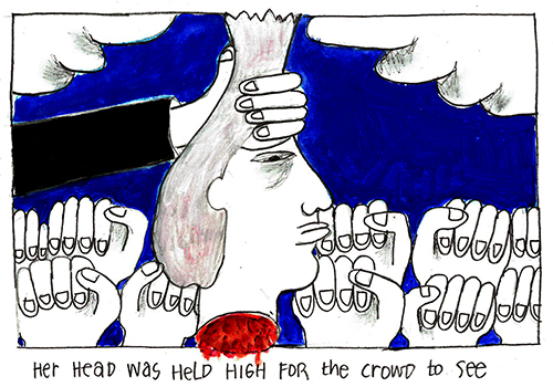 The day Marie Antoinette was beheaded, I was standing by the side of the road when the cart taking her to the guillotine passed by. People in the street were screaming insults and shaking their fists at her. She was dressed in a simple white chemise, her hands tied behind her back. The Queen’s hair had been cut off so it wouldn’t interfere with the executioner’s blade.