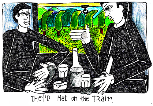 Two men meet on a train. One man, Guy, is an amateur tennis star whereas the other, Bruno, is a charming psychopath. To pass the time, the men starting talking. Bruno reveals that he has a perfect murder scheme—two strangers meet and swap murders. That is, Bruno would kill Guy’s unfaithful wife and, in exchange, Guy would kill Bruno’s despised father. The film, “Strangers on a Train”, directed by Hitchcock, was based on a book by Patricia Highsmith.