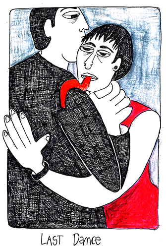 Claudette and Rodolphe dance together professionally. In their routine, Rodolphe pretends to strangle Claudette but stops his raptus in time then joyfully frees Claudette in the end. But the dance routine changes hen Rodolphe discovers that Claudette has been cheating on him. Now the raptus is real and Rodolphe does nothing to control his anger. “He had strangled her, too tightly for her to cry out. Rodolphe walked off the little stage, and left Claudette for other people to pick up.”