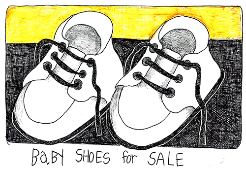 Literary myth claimed that Hemingway, at lunch with fellow writers, bet $10 that he could write a six word short story. He then wrote, the legend goes, “For sale. Baby shoes. Never worn” on a paper napkin then passed it around. The other writers had to admit that Hemingway won the bet. Lovely story but contemporary scholars seem to believe that, more than a short story, the famous baby shoe line was originally a newspaper advertisement.
