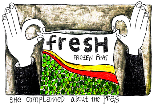 In Can’t and Won’t, Lydia has turned letters of complaint into short stories such as “Dear Frozen Peas Manufacturer” where the author complains that the dull yellow green color of the peas on the packaging doesn’t do their product justice.