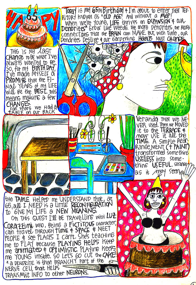 On this quest I’ll be traveling with Luz Corazzini, who, being a fictitious character, can travel through time and space and meet people and see places I can’t. She’s teaching me to play because playing helps keep me animated and optimistic. Playing keeps me young inside.