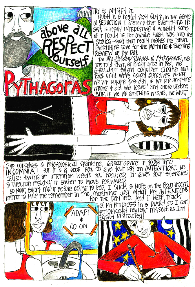 In The Golden Verses of Pythagoras, we’re told that once in bed, we shouldn’t even consider closing our eyelids until we’ve asked ourselves what we did during the day, if we did anything wrong, and did we leave any chore undone. And, if we did something wrong, we need to give ourselves a psychological spanking. Great advice if you’re into insomnia!