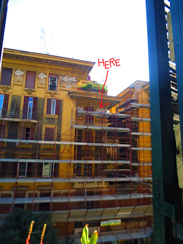 The Italian government is giving fiscal incentives for the ecological amelioration of buildings. Anxious to take advantage of the bonus, now Rome is full of condominiums covered in scaffolding such as the building across the street from where I live.