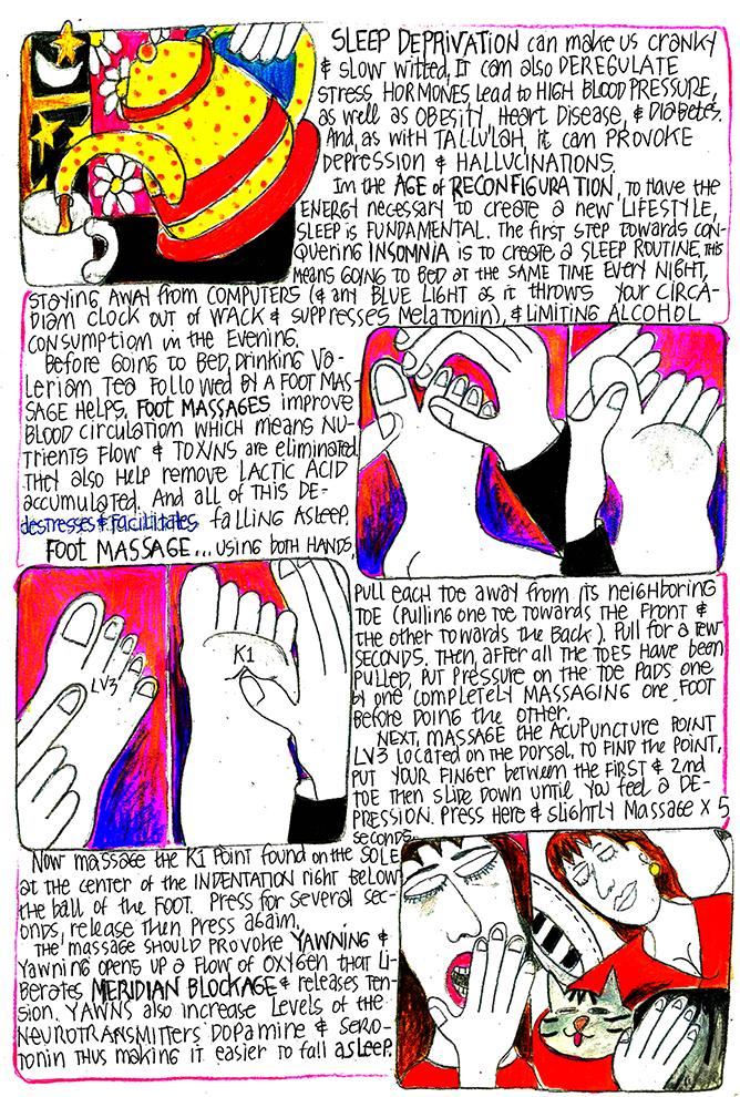 Breaking away from an old lifestyle and creating a new one takes energy. So the most basic thing to do is get a good night’s sleep. Here are a few suggestions if you suffer from insomnia: keep a regular bedtime schedule, exercise during the day, no alcohol before bed, no computer or electronic devices in the bedroom, read a pleasant novel to keep you from thinking negative thoughts, make sure your bedroom is airy, clean, quiet, and completely dark when the lights are turned off. And if all that fails, try a foot massage after a cup of valerian tea!