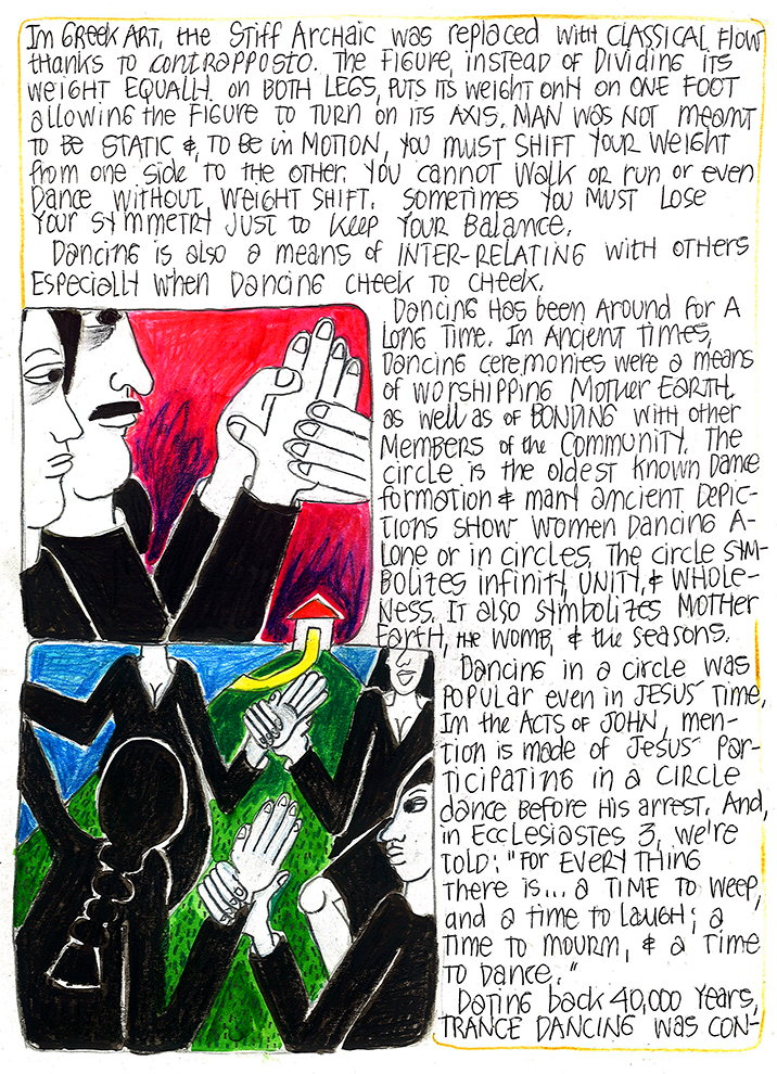 Dancing synchronizes the mind with the body and makes you shift your weight from one side to the other. In Greek Art, the stiff Archaic was replaced with Classical flow thanks to contrapposto. The figure, instead of dividing its weight equally on both legs, puts its weight only on one foot allowing the figure to turn its axis. Man was not meant to be static and, to be in motion, you must shift your weight from one side to the other. You cannot walk or run or even dance without weight shift. Sometimes you must lose your symmetry just to keep your balance.