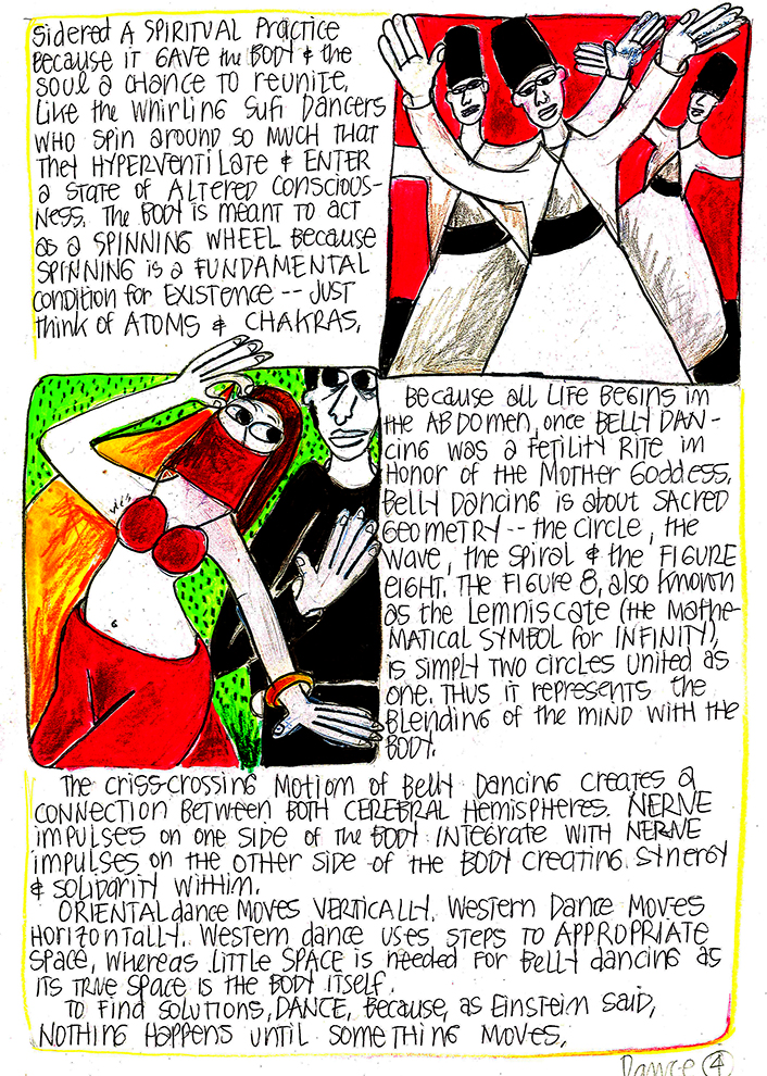 Dating back 40,000 years, trance dancing was considered a spiritual practice because it gave the body and soul a chance to reunite. Like the Whirling Sufi Dancers who spin around so much that they hyperventilate and enter a state of altered consciousness. The body is meant to act as a spinning wheel because spinning is a fundamental condition for existence—just think of atoms and chakras.