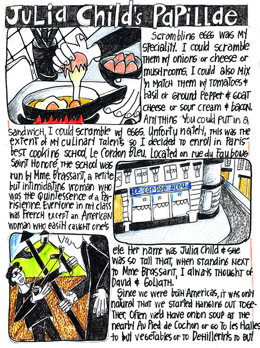 Located on rue du Faubourg Saint Honoré, the school was run by Mme Brassant, a petite but intimidating woman who was the quintessence of a Parisienne. Everyone in my class was French except an American woman who easily caught one’s eye. Her name was Julia Child and she was so tall that, when standing next to Mme Brassant, I always thought of David and Goliath.