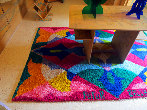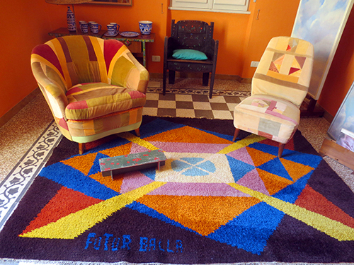 A jacket designed by Balla hanging on the hallway coatrack….Balla was very interested in fashion and wrote the “Dress Manifesto Antineutral” describing Futurists clothing. Fashion designer Laura Biagiotti developed an interest in Futurist creations and began her own collection of Balla’s work (with 130 works now at the Biagiotti Cigna Foundation). So inspired by Balla, Biagiotti based her Summer/Spring collection of 2015 on Balla’s works.