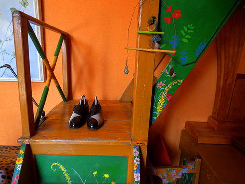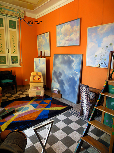 To the right are the stairs that led up to Elica’s “loft” for dreaming. Elica had a passion for clouds and had a mirror fixed above the window meant to reflect another mirror placed on the sill. That way Elica could have various views of the sky.
