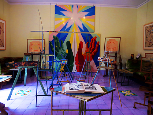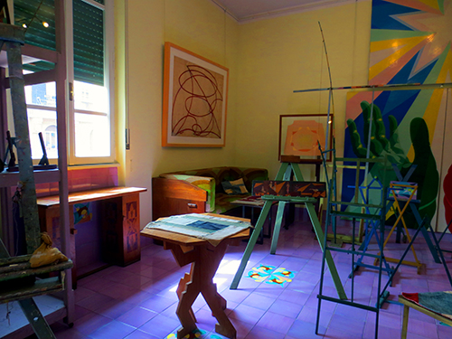 The hallway makes a turn and trades its pastels for primary colors. This part of the hallway led to Balla’s Red Studio and to the bedroom he shared with his wife.
