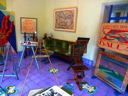Around 1904, Balla and his family moved into an old monastery in the area of Parioli (corner of via Paisiello and via Porpora) and Balla began painting inside his home as if it were a three D painting. The Ballas often had visitors and, during World War I, Balla’s studio became a meeting place for young artists.