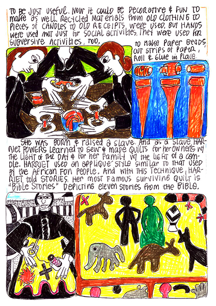 She was born and raised a slave. And as a slave Harriet Powers learned to sew and made quilts for her owners with the light of the day and for her family with the light of a candle. Harriet used an appliqué style similar to that used by the African Fon people. And with this technique, Harriet told stories. Her most famous surviving quilt is “Bible Stories” depicting eleven stories from the Bible.