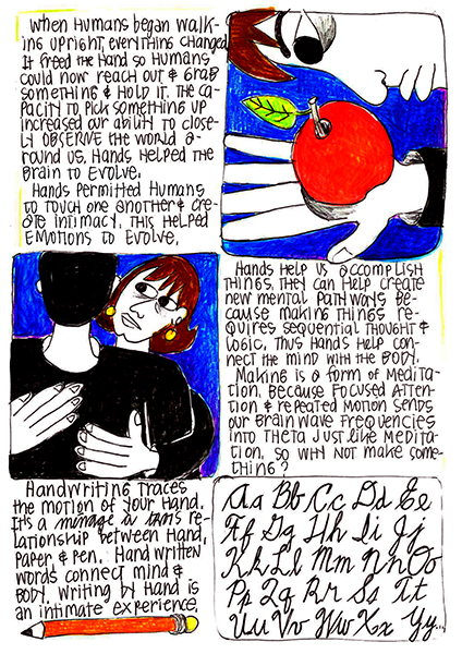 Handwriting traces the motion of your hand. It’s a ménage à trois relationship between hand, paper, and pen. Hand written words connect mind and body. Writing by hand is an intimate experience.