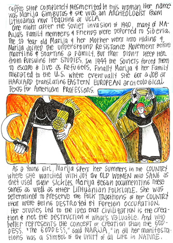 An hour later I found myself in a coffee shop completely mesmerized by this woman. Her name was Marija Gimbutas and she was an archeologist from Lithuania now teaching at UCLA.