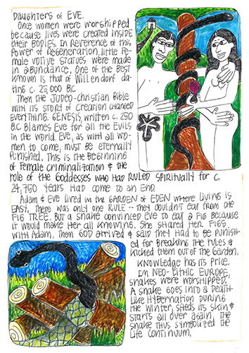 Then the Judeo-Christian Bible story with its story of creation changed everything. Genesis, written in c. 250 B.C., blames Eve for all the evils in the world. Eve, as with all the women to come, must be eternally punished. This is the beginning of female criminalization and the role of the goddess who had ruled spirituality for c. 24,750 years had come to an end.