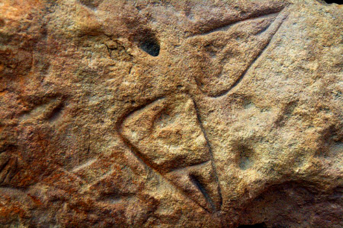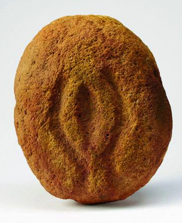 Another prehistoric vulva representation, pictured above, is made of quartz sandstone. It was found at a Lepenski vir archaeological site in Serbia.
