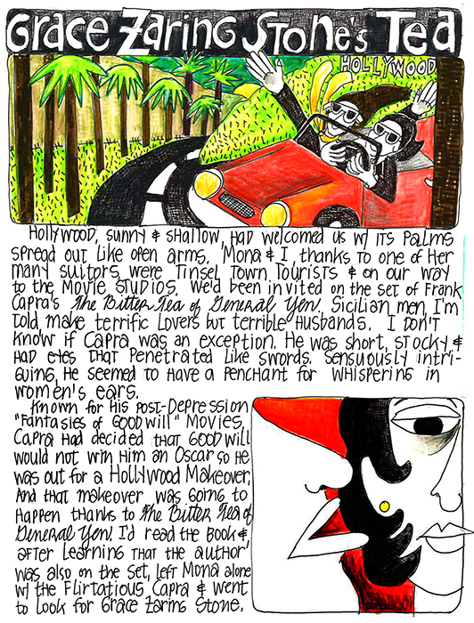 Hollywood, sunny and shallow, had welcomed us with its palms spread out like opened arms. Mona and I, thanks to one of her many suitors, were tinsel town tourists and on our way to the movie studios. We’d been invited on the set of Frank Capra’s The Bitter Tea of General Yen. Sicilian men, I’m told, make terrific lovers but terrible husbands. I don’t know if Capra was an exception. He was short, stocky, and had eyes that penetrated like swords. Sensuously intriguing, he seemed to have a penchant for whispering in women’s ears.