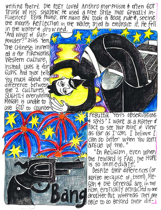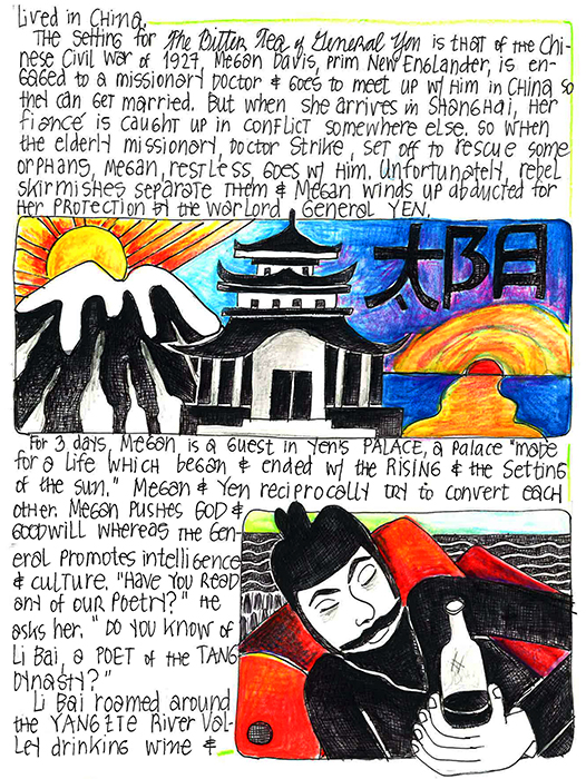 For three days, Megan is a guest in Yen’s palace, a palace “made for a life which began and ended with the rising and the setting of the sun.” Megan and Yen reciprocally try to convert each other. Megan pushes God and goodwill whereas the General promotes intelligence and culture. “Have you read any of our poetry?” he asks her. “Do you know about Li Bai, a poet of the Tang Dynasty?”