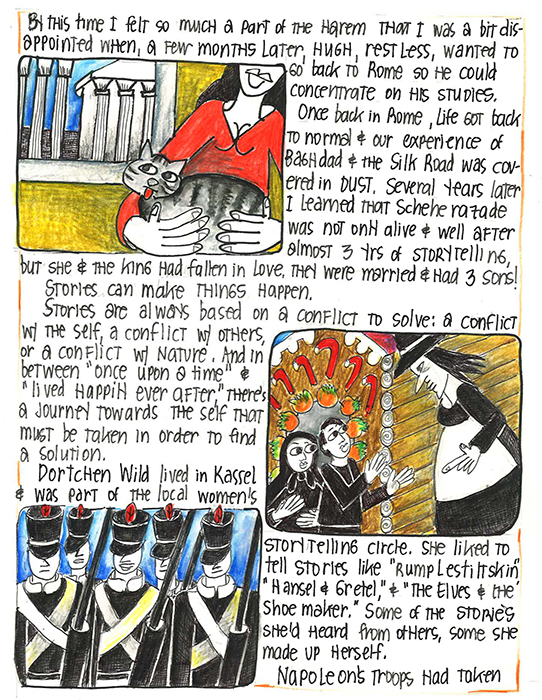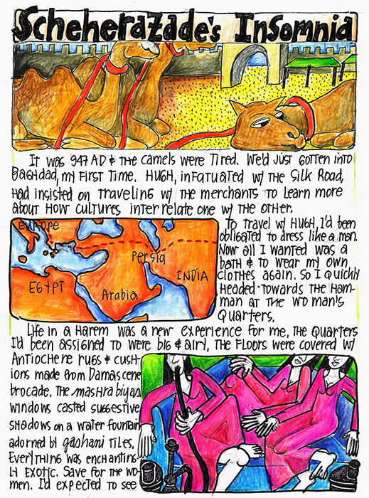 “But how will you be able to come up with all these stories?” I asked. “By appropriation” she replied, “we will simply collect the stories that the merchants tell to entertain themselves while travelling on the Silk Road. Then we will rewrite them adding The Female Touch.”