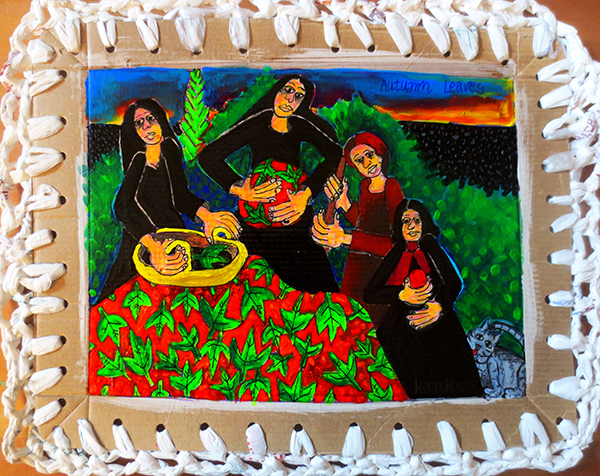 The painting shows four young girls in front of a pile of leaves. The two girls on the right are his wife’s sisters, Alice and Sophie Gray. They are dressed in nice clothes whereas the other two girls are shown in working class clothing. It’s twilight and the day is ending. In many ways, the painting is about the transience of youth and beauty.