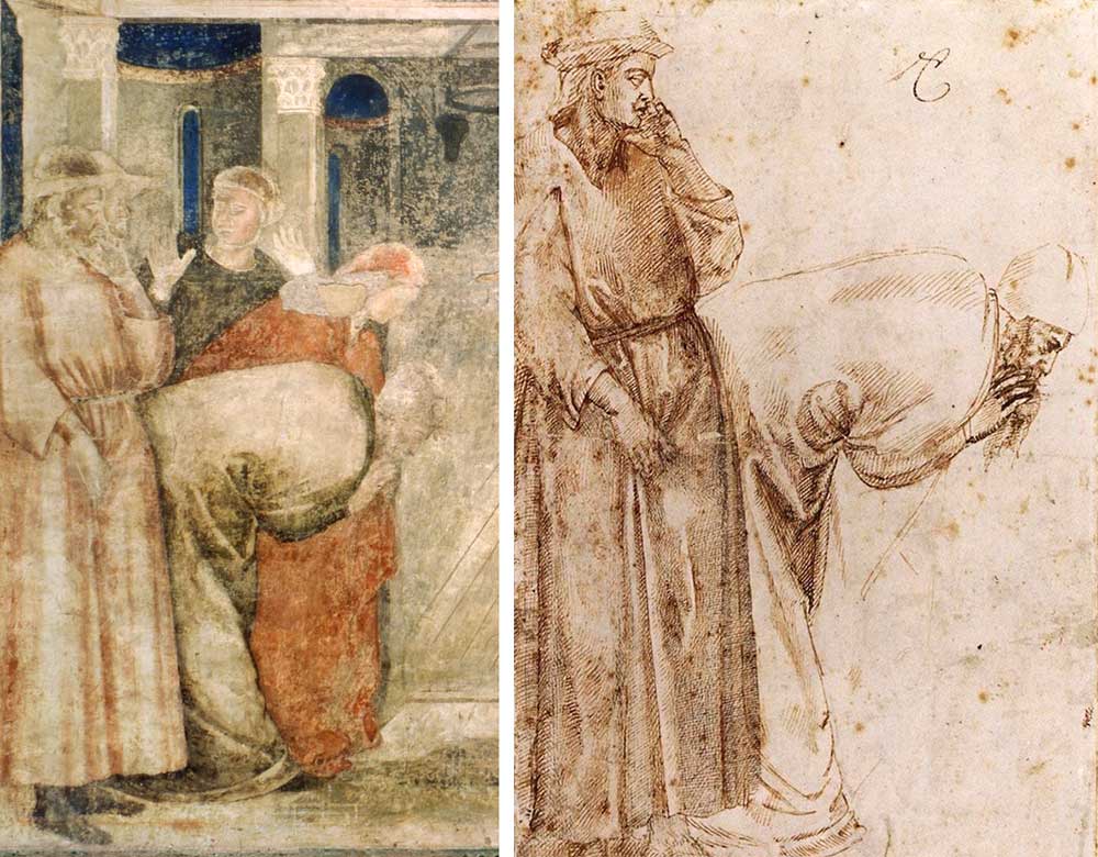 Detail from The Death and Ascension of Saint John. On the left, Giotto’s original. On the right, Michelangelo’s copy. Via Sightsize