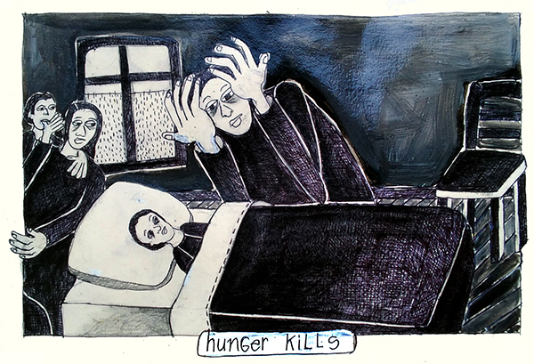 Käthe was a committed socialist and pacifist. In 1914, her son, Peter, was killed on the battlefield. After she lost her son to war, Käthe began to suffer from depression and her thoughts got darker and darker. And this pain can be seen in her etchings—children begging for food and mothers holding their dead babies.