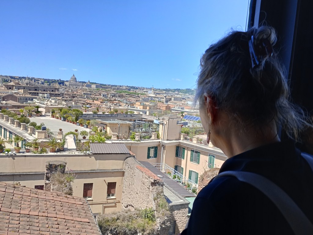 The Scuderie del Quirinale where the exhibition is held is a work of art in itself. And the windowed stairway leading away from the exhibition provides an opportunity to see Rome in a way impossible to see from the street.