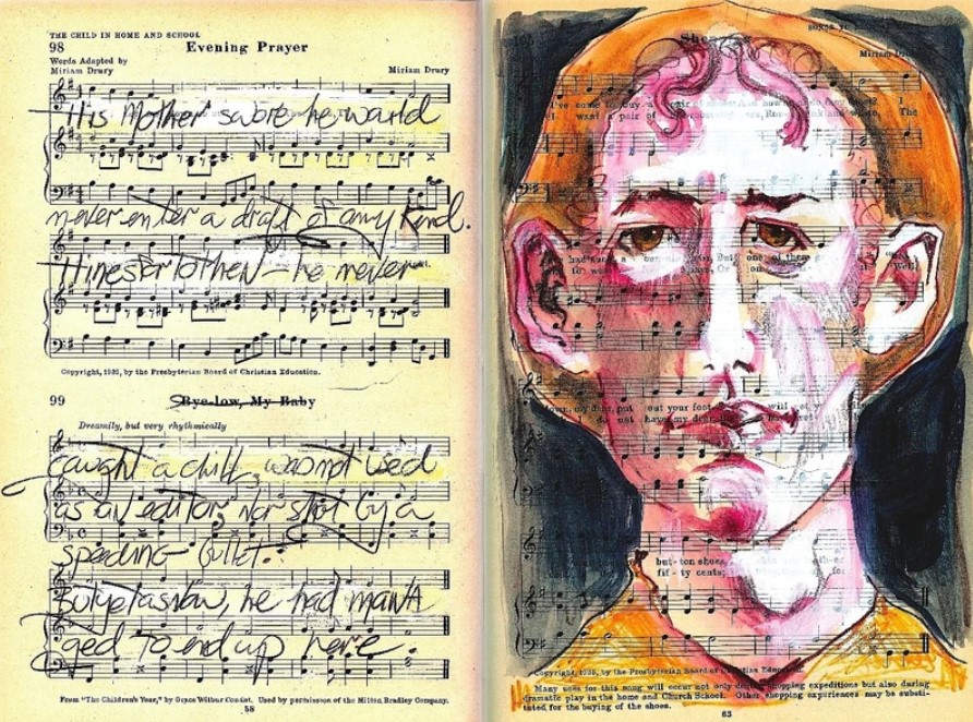 A slight asemic art feel overtook me. The feeling of words blurring w/ optic meaning, + pictures