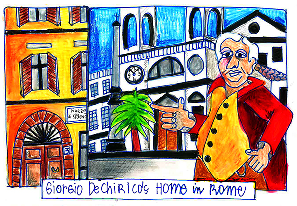 De Chirico spent the last 30 years of his life living at Piazza di Spagna in Rome with his wife Isabella Pakszwer Far. They had a magnificent home and a magnificent terrace that looked towards Villa Medici.