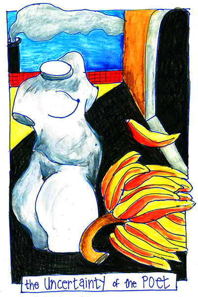 The Uncertainty of the Poet (1913) shows the torso of Aphrodite next to a bunch of bananas that remind me of Josephine Baker’s dance costume.