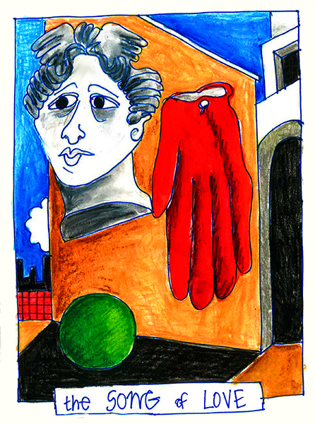 The Song of Love (1914) pursues the enigmas de Chirico was consumed by. There are certain recurring elements in these paintings such as the architectural setting, the Greek statues, and the trains puffing smoke. The latter is most likely a reference to his dad who helped with the construction of the Greek railroads.