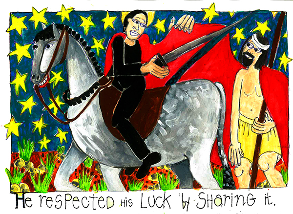 One extremely cold winter’s day in the year 335, Marin was doing his duty as a young soldier in the Roman army when he saw a beggar freezing from the cold. Without hesitation, Martin took his sword and with a big SWHISH sliced his cloak in half. He kept one half for himself and gave the other half to the beggar. Instead of using the sword to destroy a life, Martin had used it to save a life.