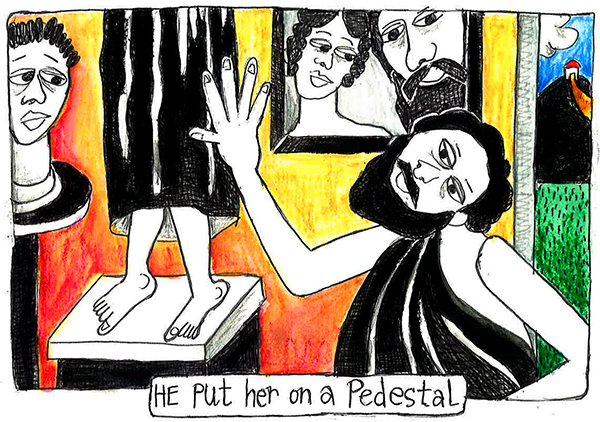 Galatea was a statue created by Pygmalion. Pygmalion, sculptor and king, was such a misogynist that he’d promised himself a life of celibacy. To keep from thinking about sex, he’d stay awake at night sculpting stone. Since no perfect woman existed, he decided to create one for himself. Pygmalion worked day and night on the statue and fell in love with it once it was finished. He named it Galatea meaning “she who is milk white” then hungrily kissed her mouth and caressed her breasts. Of course, having been made from stone, Galatea was cold and could not return his effusions.